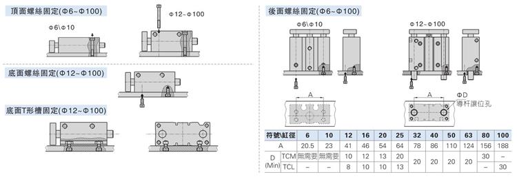 原裝亞德客AIRTAC TCL、TCM系列氣缸 提供多方位的安裝固定型式