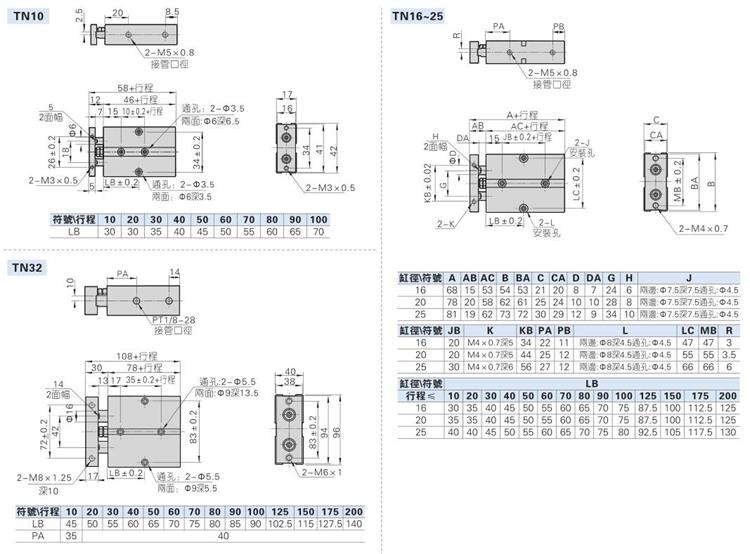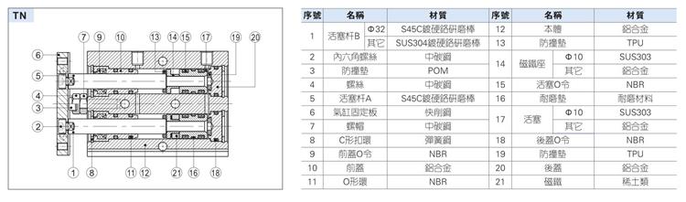 原裝亞德客AIRTAC TN系列雙軸氣缸 標準配置為附磁型 無不附磁型可選