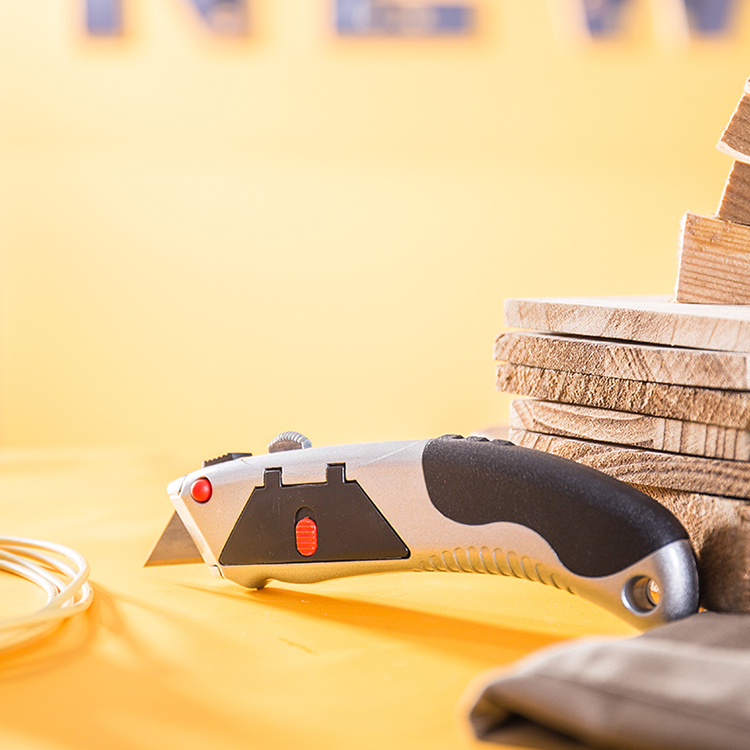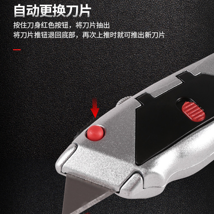 鋅合金刀殼制作,堅固耐用;自鎖功能,伸縮自如,使用方便。