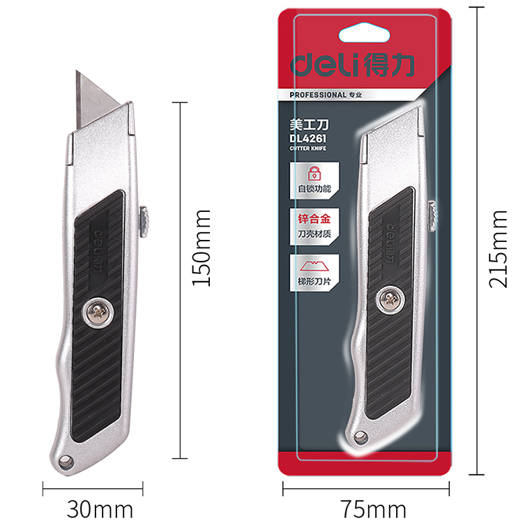 得力伸縮鋅合金美工刀DL4261重型自鎖T型刀片