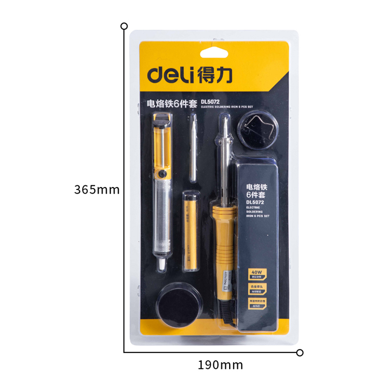 得力DL5072電烙鐵6件套(黃),雙層天然云母發熱芯,