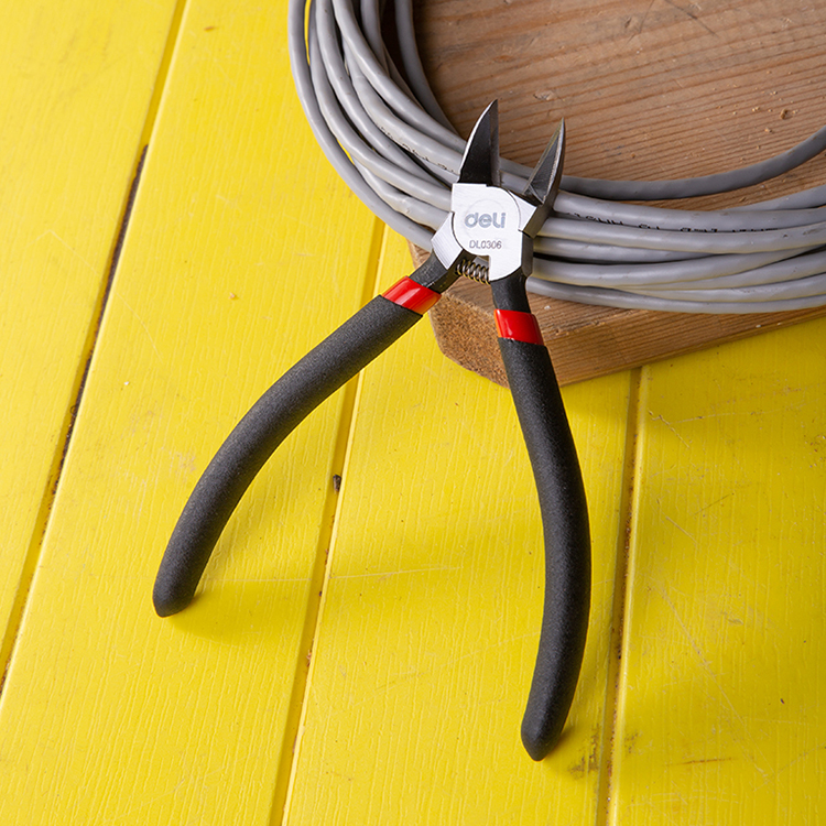 得力斜嘴偏口小口水剪線水DL0306口鉗(紅)電工工具