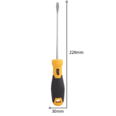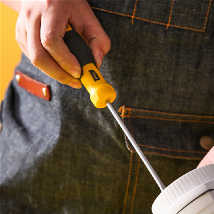 得力一字螺絲批刀桿為鉻釩鋼整體淬火而成,硬度高,韌性好,批頭帶強磁。