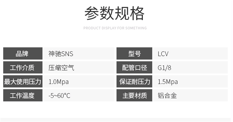 SNS神馳氣動單向閥基本參數圖