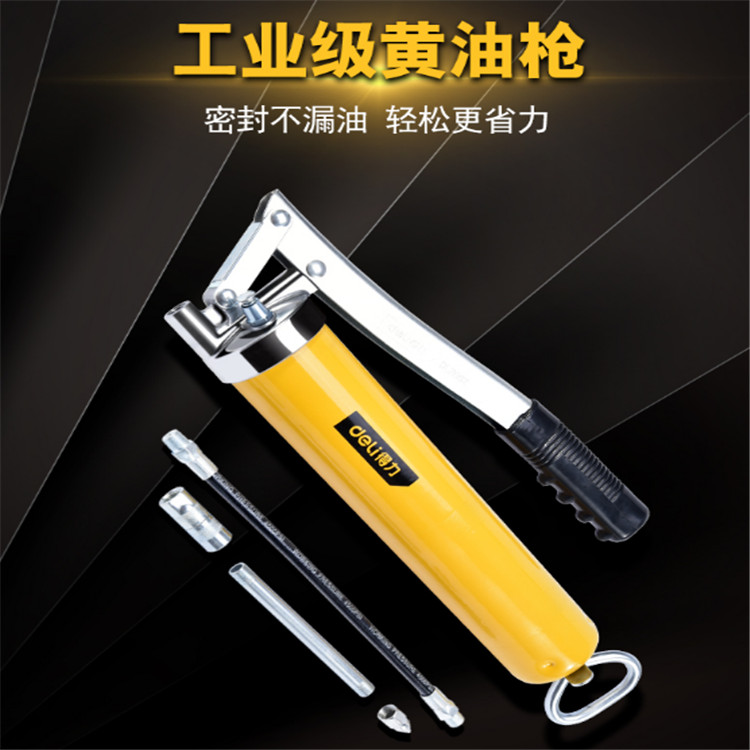 得力黃油槍手動單雙缸重型手壓式高壓小型槍頭采用國標鋁合金,耐壓性能提高。