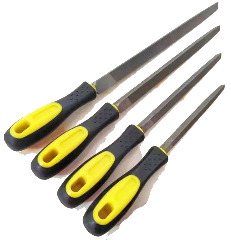 得力(deli)中齒三角銼刀6"8"10"12"雙色橡塑柄打磨銼工具銼
