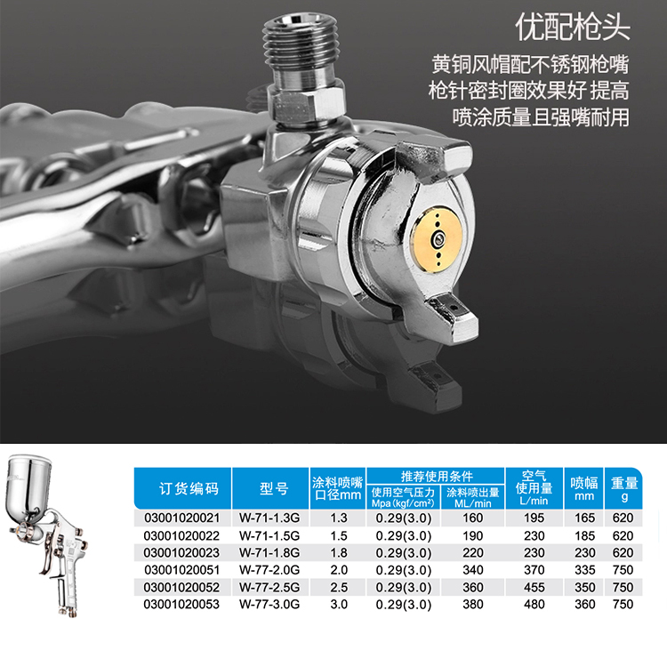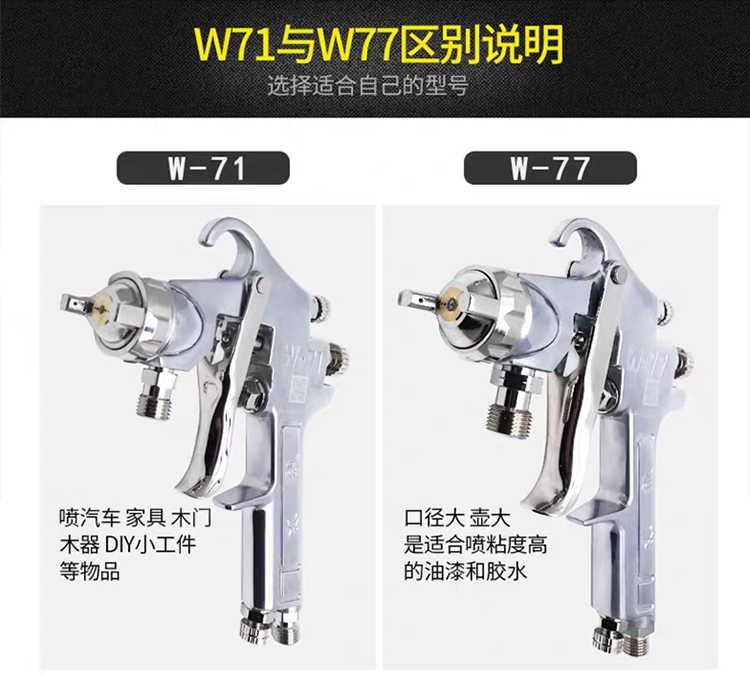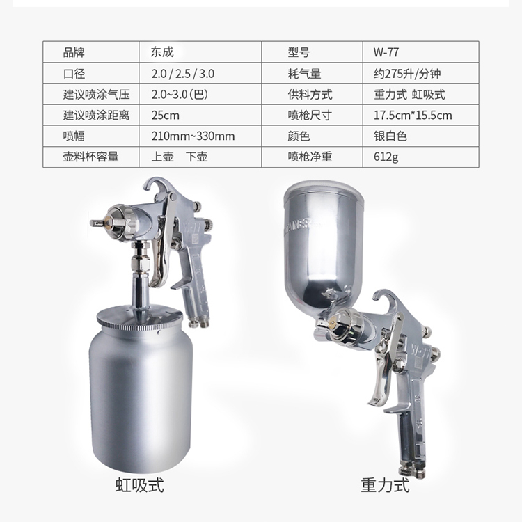 重力式/上壺噴漆搶W-71與W-77參數