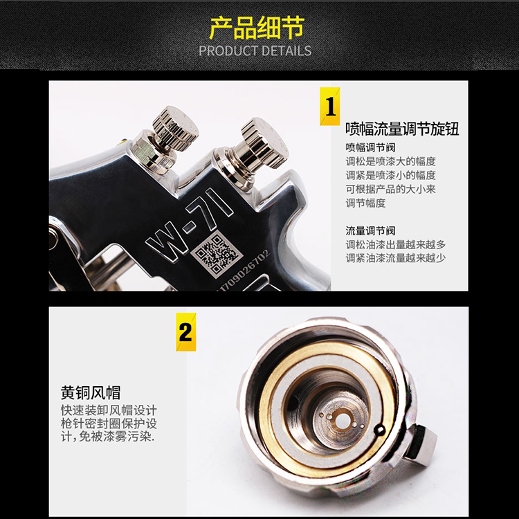 噴漆搶噴幅度流量調節旋鈕/不銹鋼噴嘴/黃銅風帽/噴槍扳機
