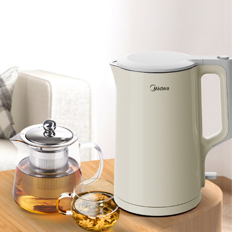 美的 Midea 電水壺燒水壺1.7升304不銹鋼雙層隔熱防燙電水壺暖水壺開水壺