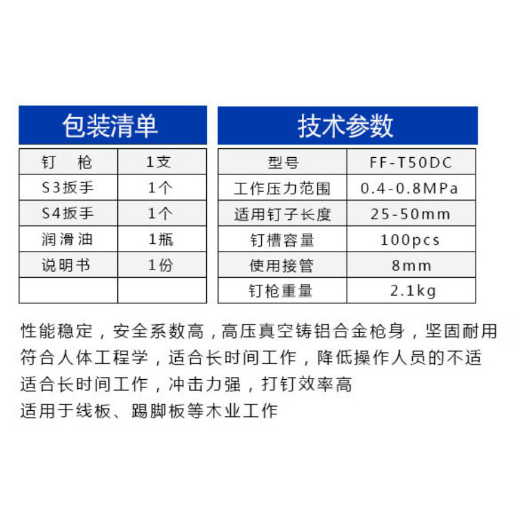 東成氣動直釘槍FF-T50DC不易卡釘,高速便捷