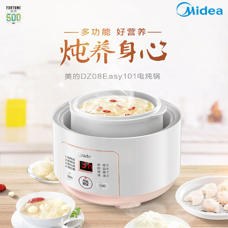美的(Midea)電燉鍋甄選優質瓷土,安全健康,可與食物放心接觸。