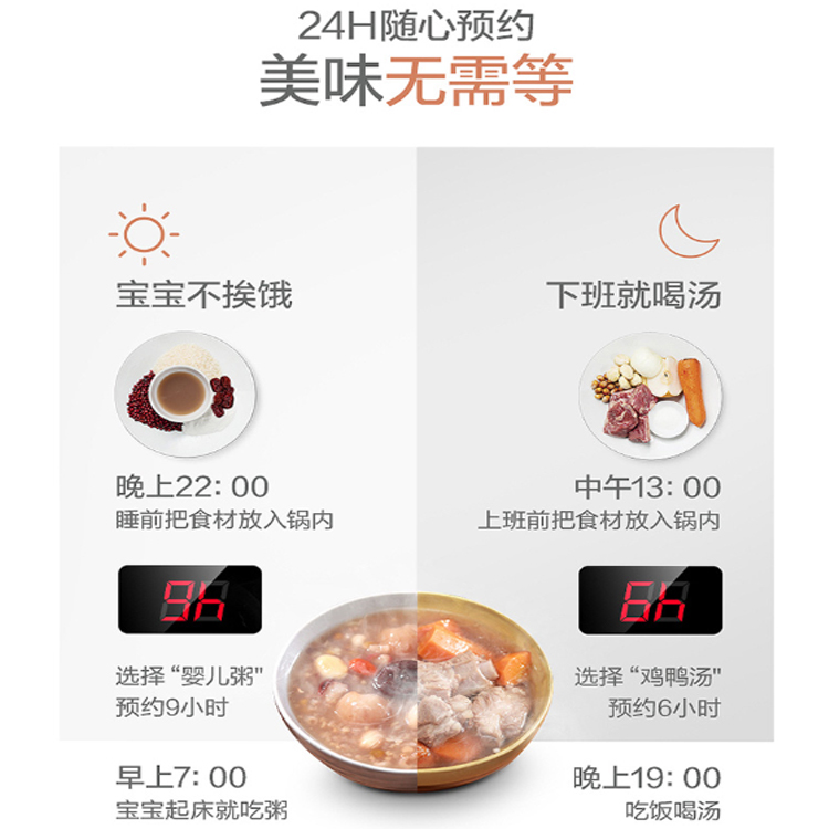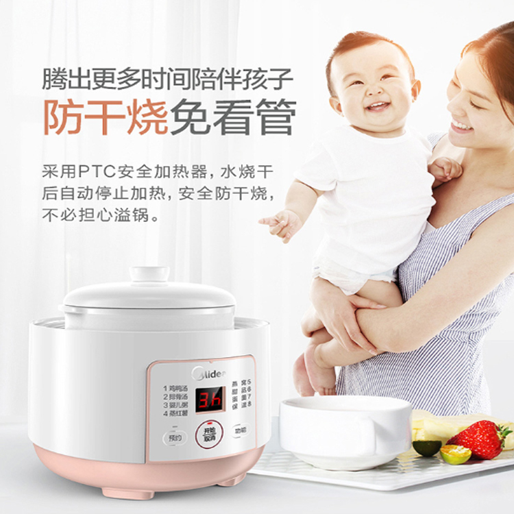 美的(Midea)電燉鍋水燒干后自動停止加熱,安全防干燒。