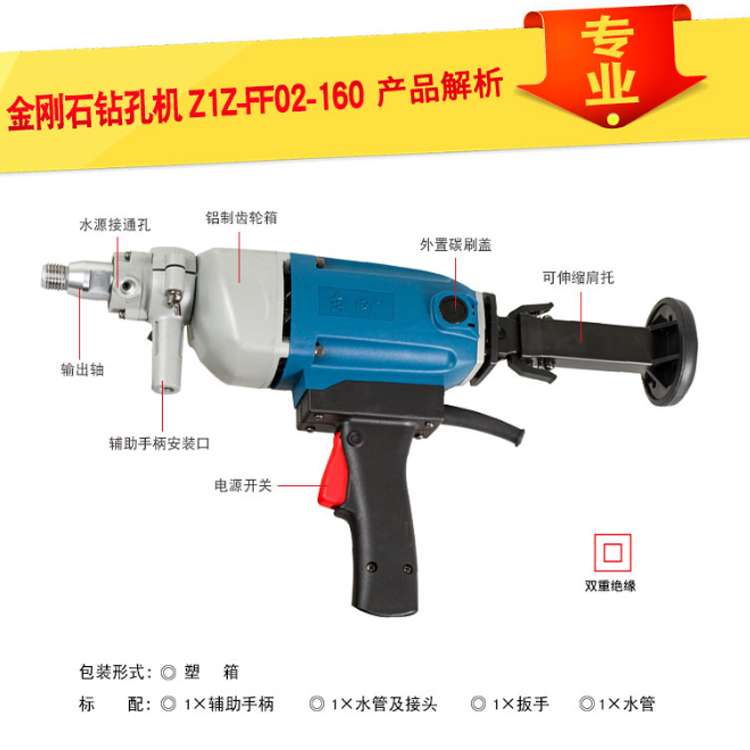 東成金剛石鉆孔機Z1Z-FF02-160手持式工程鉆孔機大功率混凝土空調開孔器