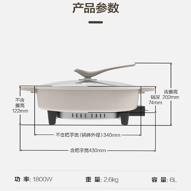 美的(Midea)多用途鍋電火鍋電炒鍋電煮鍋6L大容量