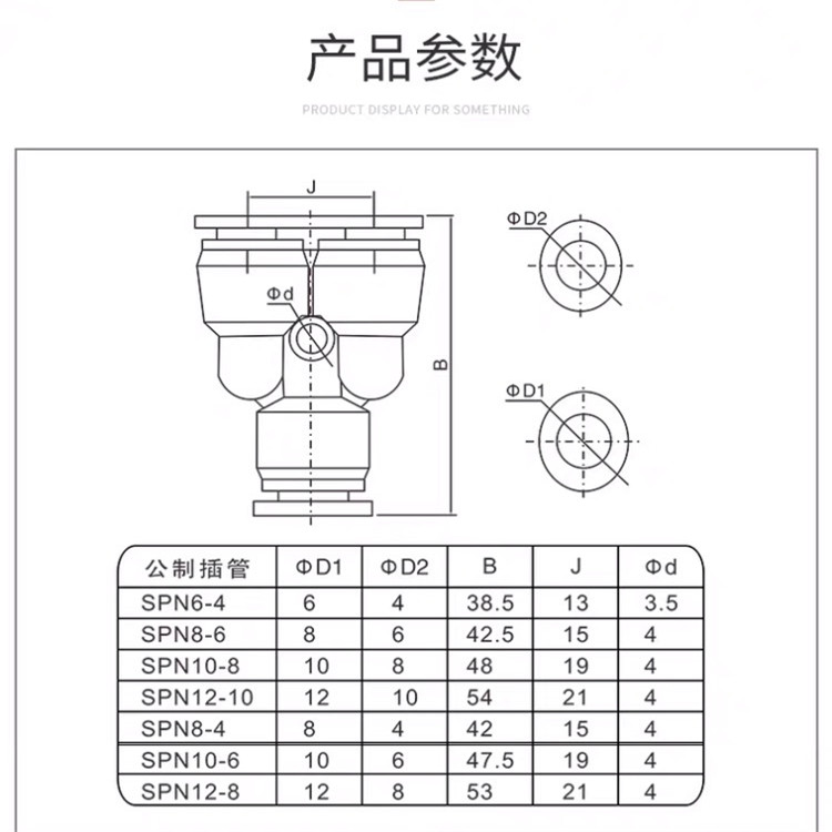 SNS神馳氣動氣管快速接頭Y型三通接頭的產品參數