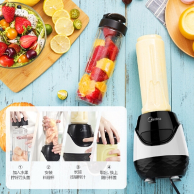 美的(Midea)便攜雙杯榨汁機按住按鍵不放,機器工作,隨手而榨。