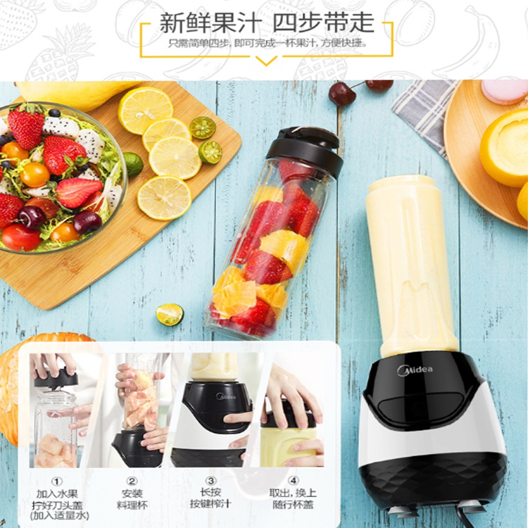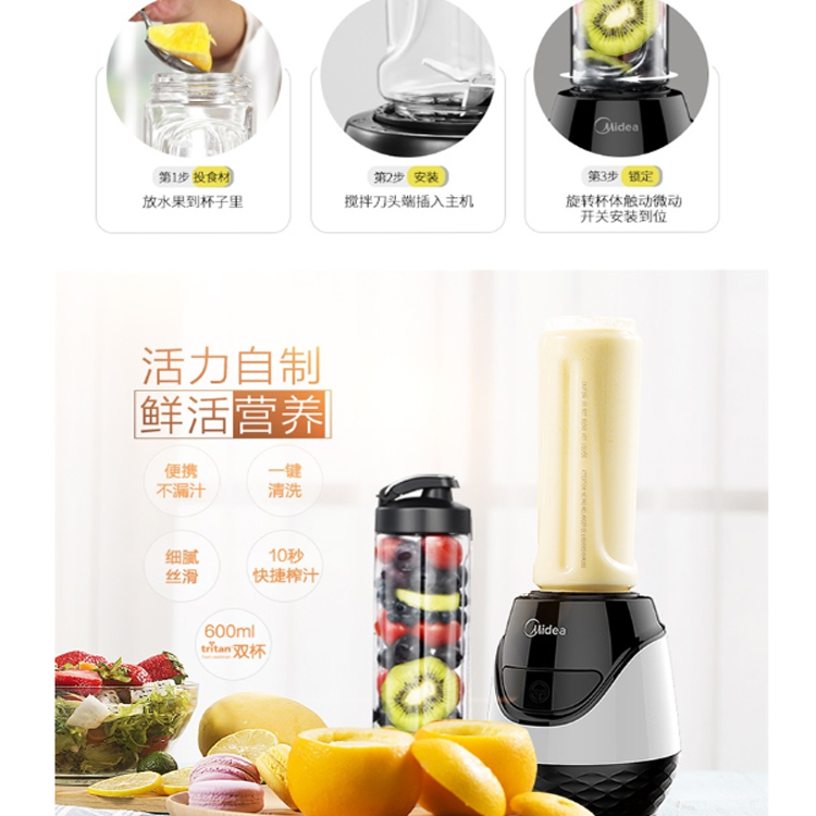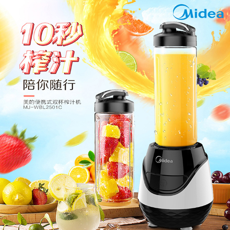 美的(Midea)便攜雙杯榨汁機四葉3D立體攪拌機,精細研磨。