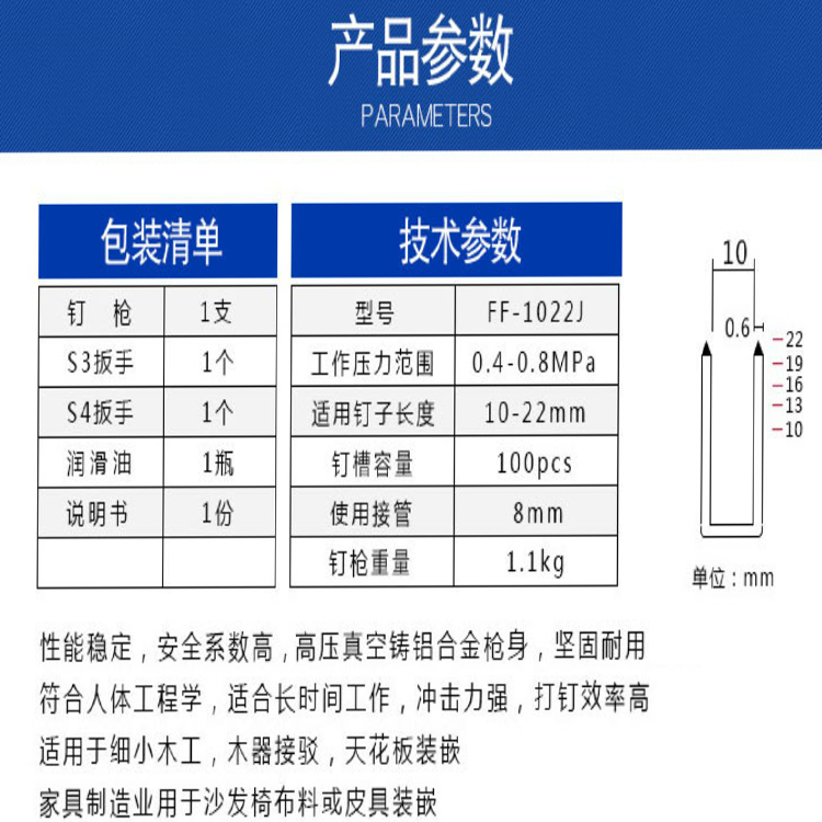 東成氣動(dòng)碼釘槍FF-1022J氣釘槍氣動(dòng)碼釘鋼釘射釘蚊釘