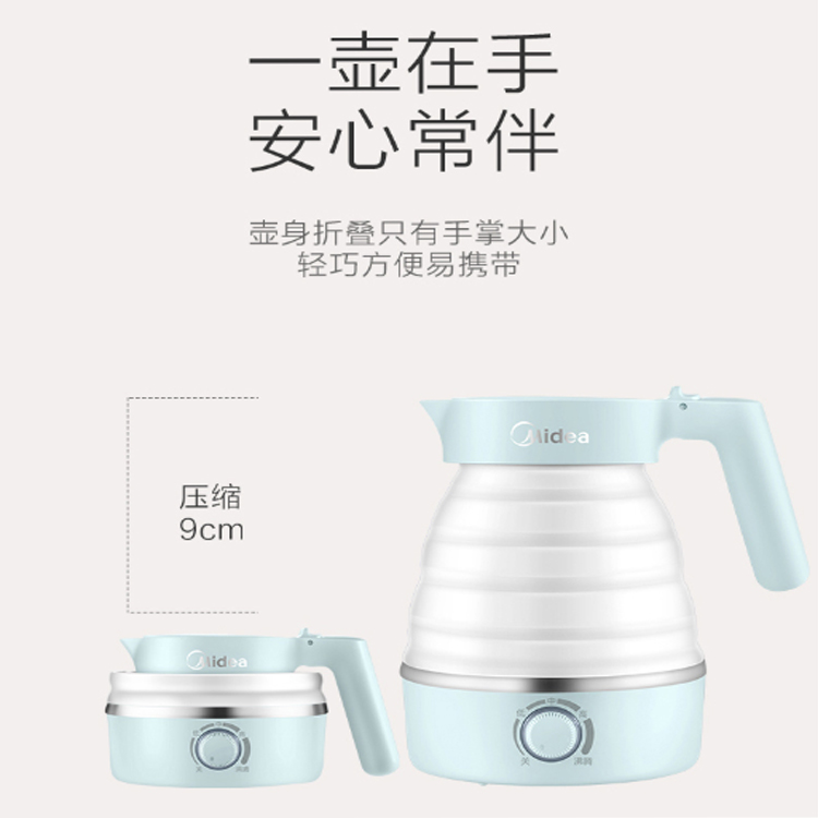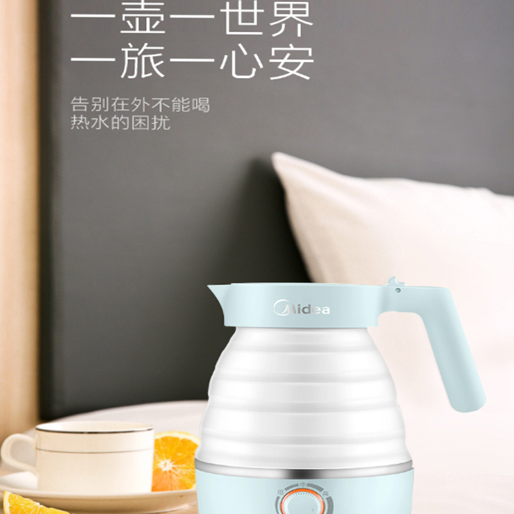 美的折疊電水壺采用嬰兒奶嘴級硅膠,安心耐用。