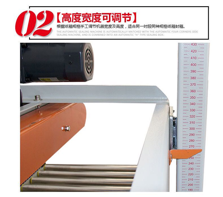 封箱機加密輸送滾筒:輸送滾筒加密設計,之間縫隙很小,適合小紙箱輸送封箱導向板設計,在聯系封箱時更輸送輸送流程。