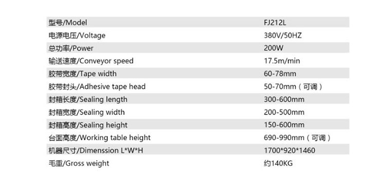 光明牌FJ5050左右驅動封箱機/封口機/自動封口機/膠帶封箱機 產品參數圖