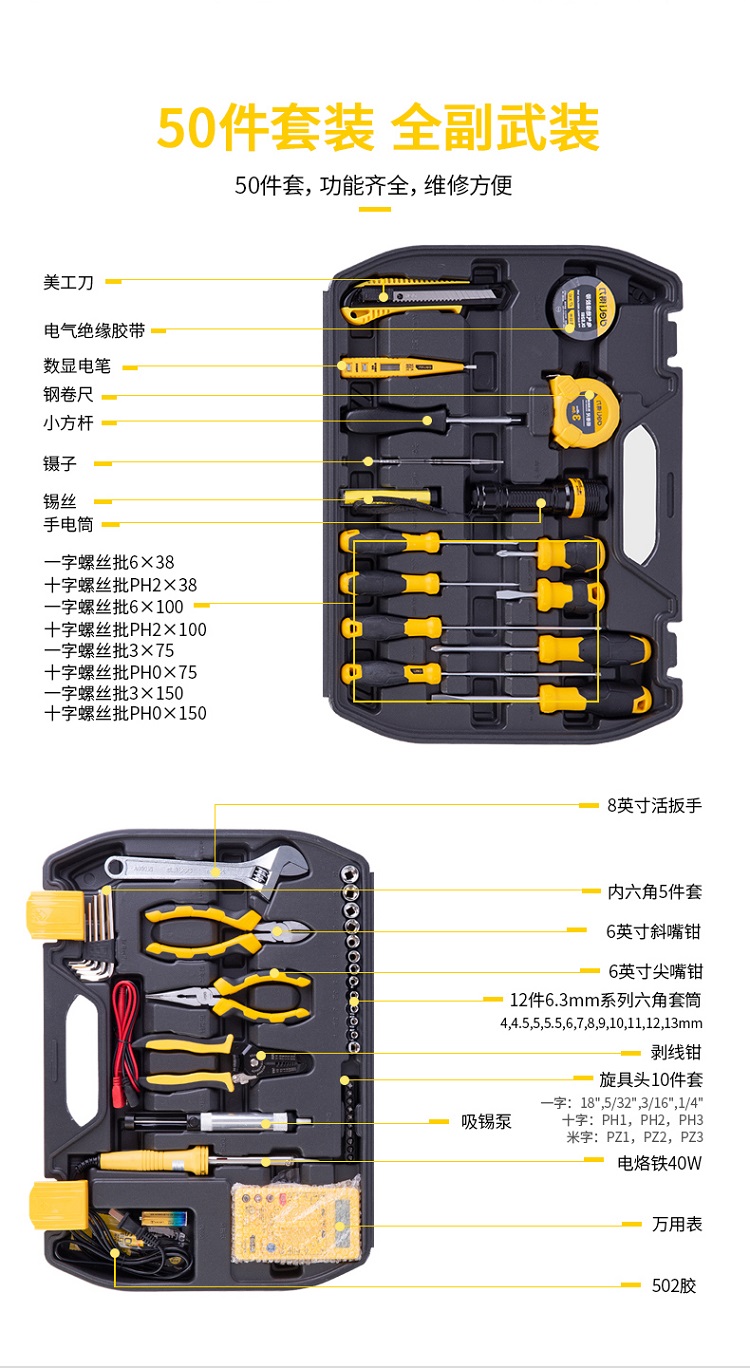 得力電工工具組套 家用電訊工具50件42件套裝帶萬用表 電子維修工具箱