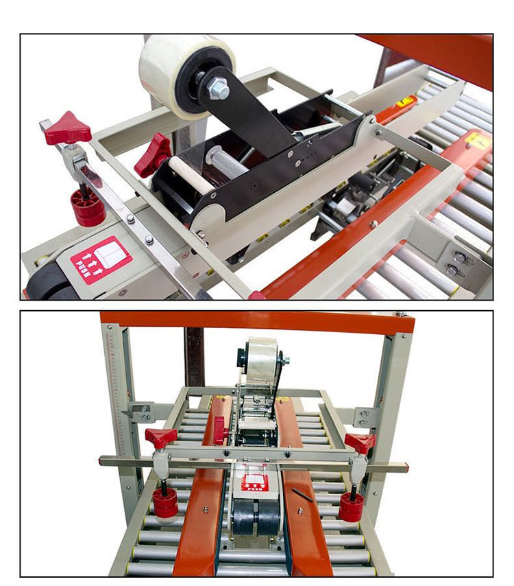 封箱機加密輸送滾筒:輸送滾筒加密設計.之間縫隙很小,適合小紙箱輸送封箱導向板設計,在聯系封箱時更輸送輸送流程。