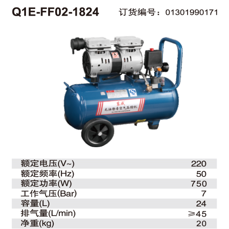 東成無油靜音空壓機Q1E-FF02-1824小型高壓空氣壓縮機木工噴漆牙科打氣泵