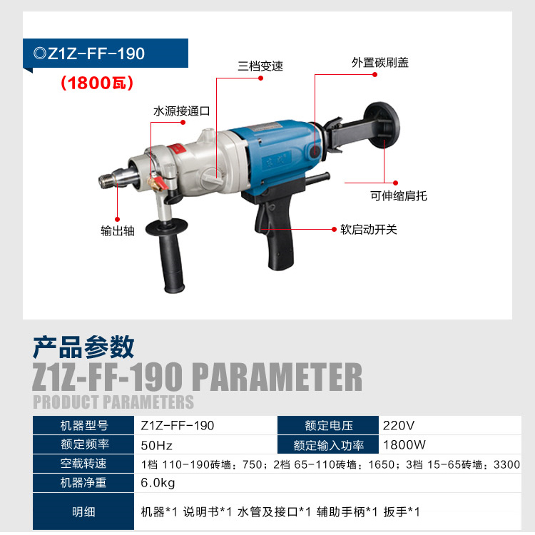 東成金剛石鉆孔機(jī)手持式Z1Z-FF-190可調(diào)速空調(diào)開孔器混凝土打墻壁