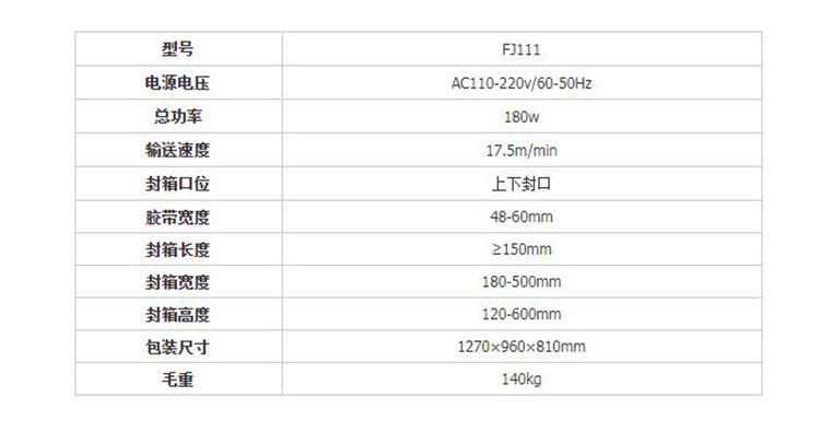 FJ111封箱機 膠帶封箱機 小型自動封箱機 紙箱封箱機系列 產品參數圖