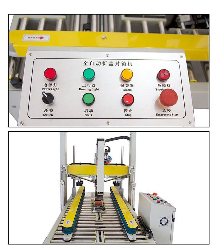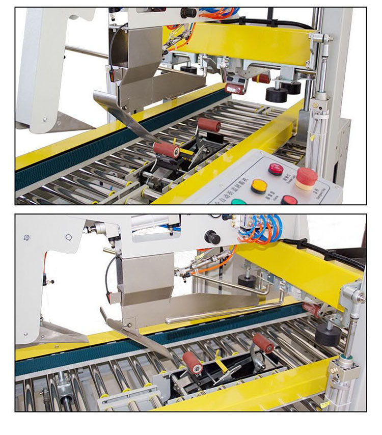 3、自動折紙箱上蓋,上下自動貼上膠帶,經(jīng)濟(jì),平穩(wěn)、快速