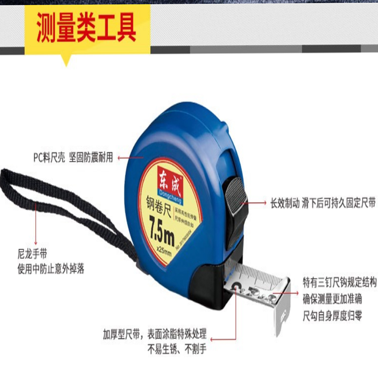東成手動(dòng)工具卷尺側(cè)面長效制動(dòng) 解鎖更方便