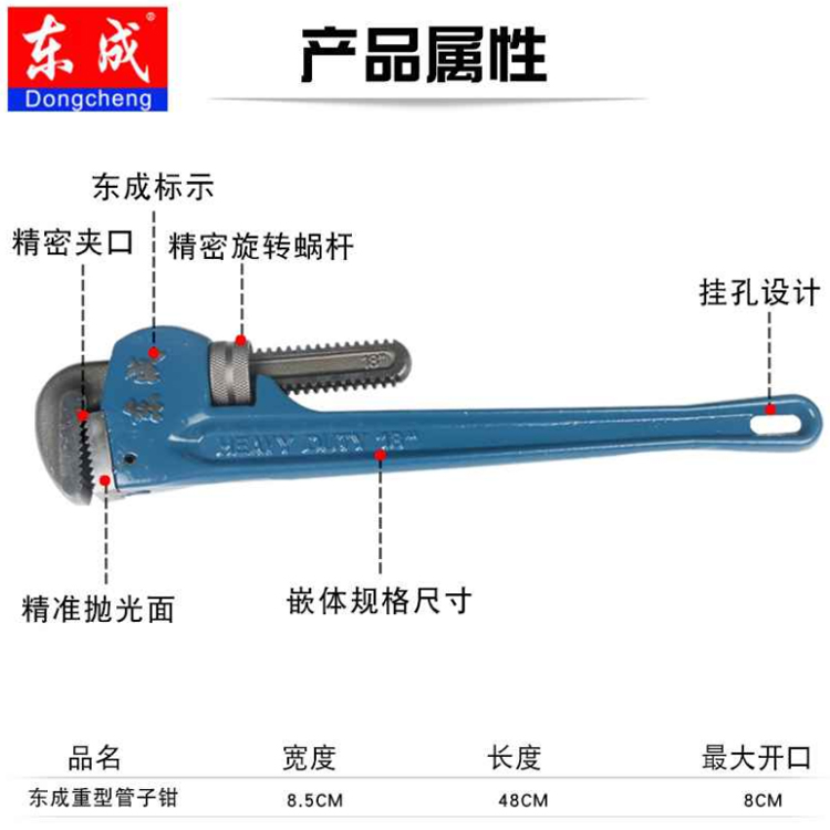 東成重型管子鉗鉗口優質鋼材鍛壓 調質處理