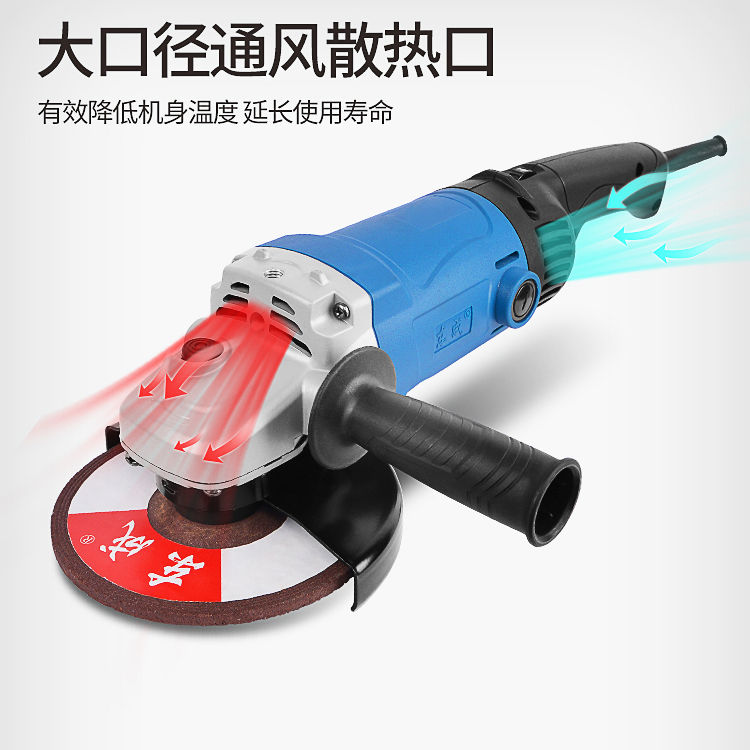 角磨機大口徑通風散熱口,有效降低機身溫度,延長使用壽命