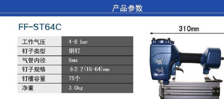 東成 FF-ST64C氣動鋼釘槍適用18-64mm鋼釘槍操作安全,打釘沖擊力強