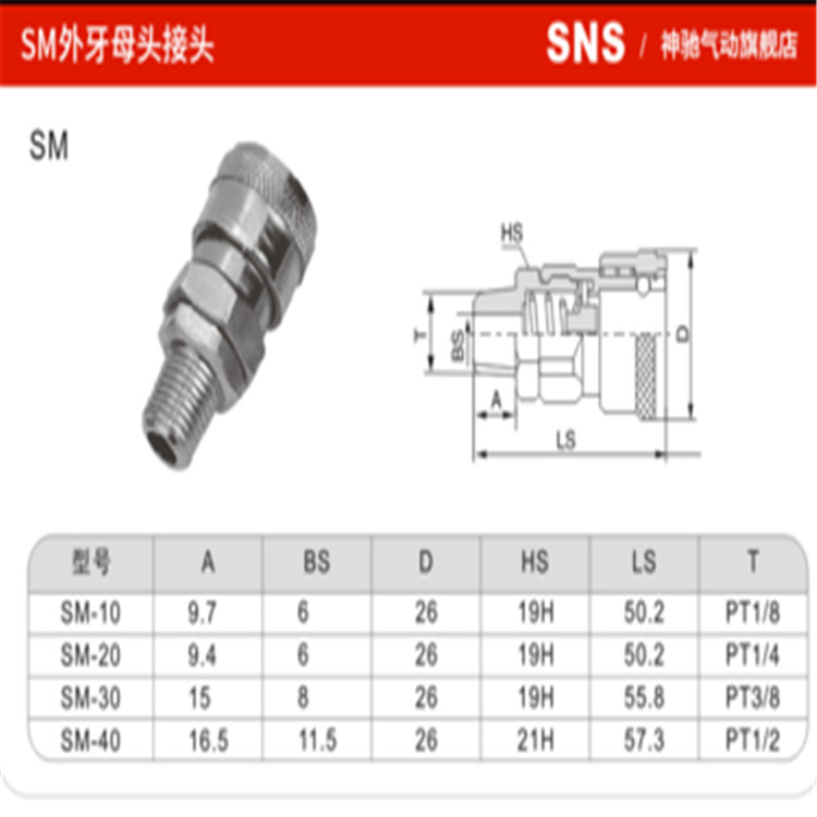 SNS神馳氣動C式自鎖快速接頭SM40快插母頭參數(shù)