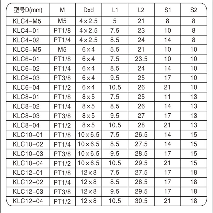 產品規格:KLC8-03