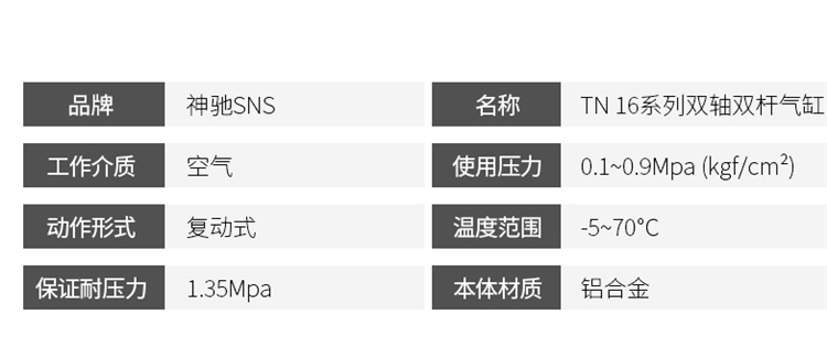 SNS神馳氣動 TN雙聯雙軸氣缸 帶磁氣缸夾雙桿