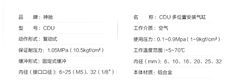 SNS神馳氣動多位置自由安裝氣缸基本參數圖