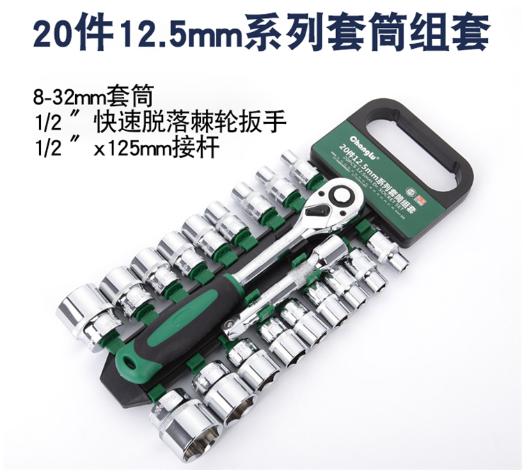 長鹿套筒扳手套裝快速棘輪扳手20件12.5mm展示