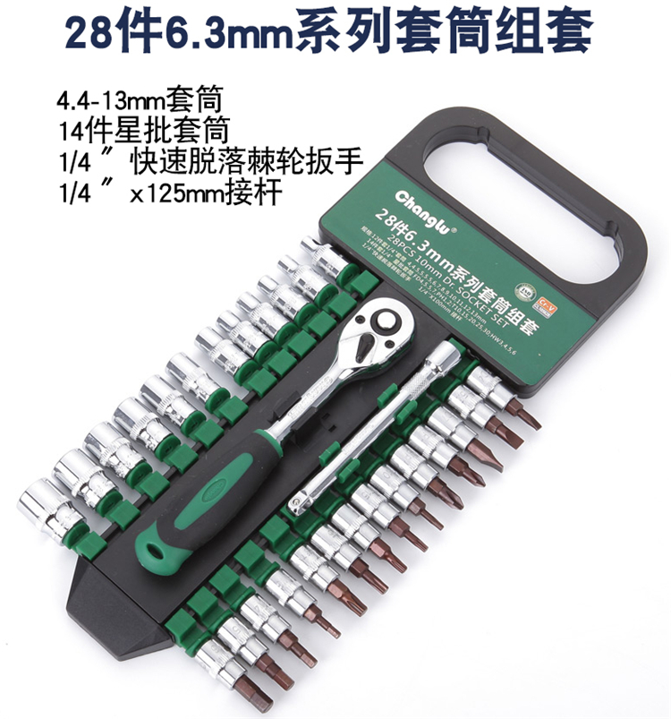 長鹿套筒扳手套裝快速棘輪扳手28件6.3mm展示