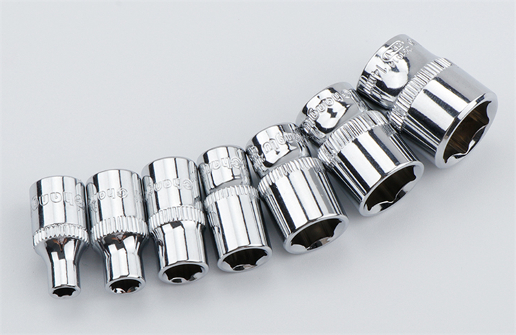 長鹿中飛10mm系列鏡面6角套筒頭子滾花防滑設計,拿取方便不打滑。