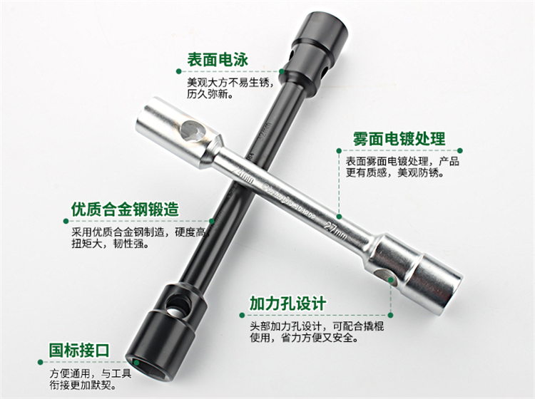 長(zhǎng)鹿霧面電泳輪胎扳手合金鋼鍛造加力孔設(shè)計(jì)電泳電鍍處理