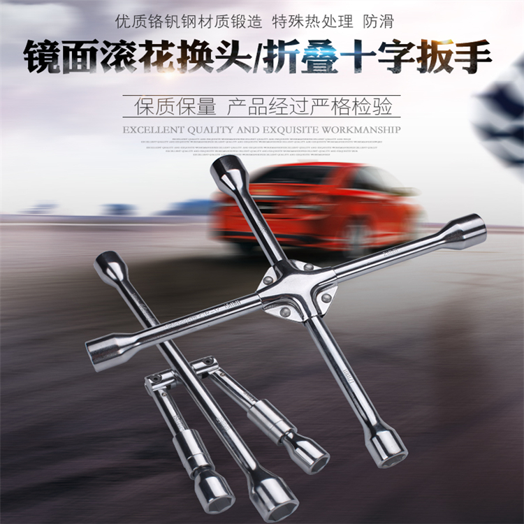 長鹿工具鏡面滾花加固型換頭套筒可折疊十字扳手,方便攜帶。