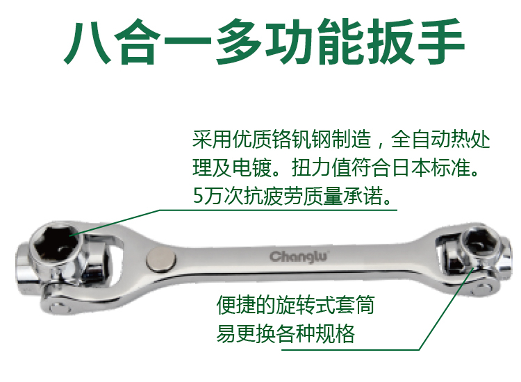 長鹿52合一多功能套筒扳手優(yōu)質鉻釩鋼制造、全自動熱處理及電鍍,扭力值符合日本標準。