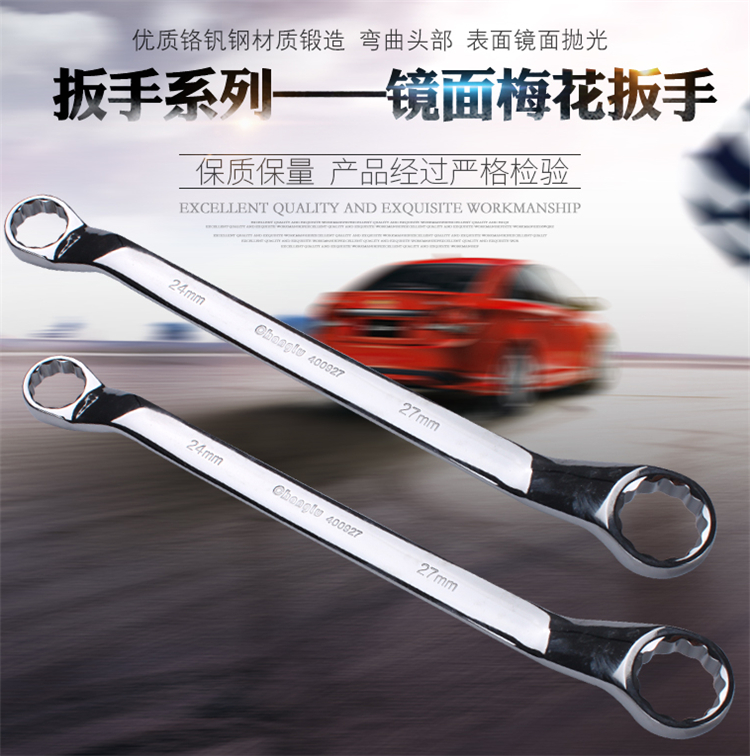 長鹿工具鏡面高檔梅花扳手優質鉻釩鋼鍛造,彎曲頭部、表面鏡面拋光,具有光澤,