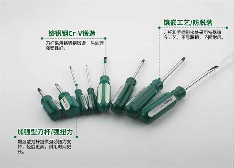 長(zhǎng)鹿工具 彩條柄螺絲刀刀桿采用優(yōu)質(zhì)鉻釩鋼鍛造,整體熱處理,硬度高,堅(jiān)固耐