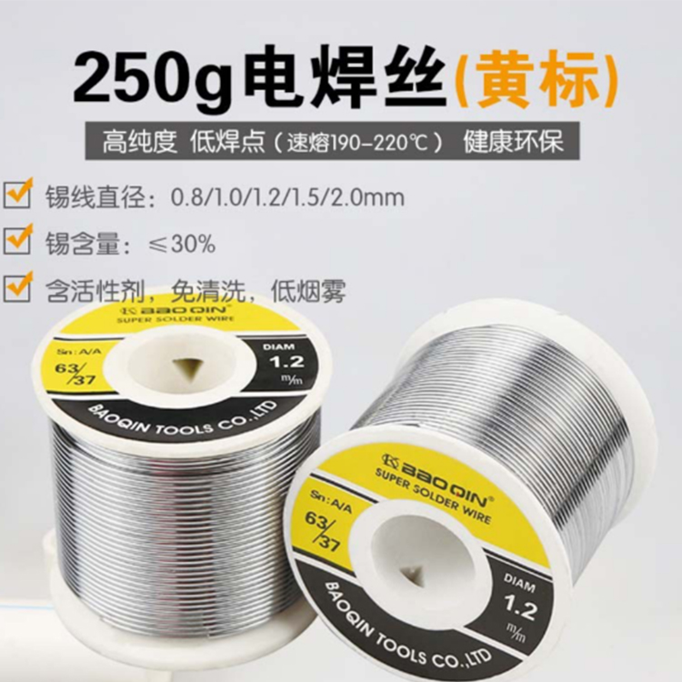 寶琴250g焊錫絲,高效焊接,安全實用,焊點光亮,免清洗,焊后離子污染低。