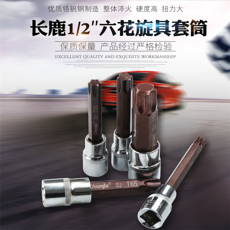 長(zhǎng)鹿12.5mm大飛1/2寸旋具批頭套筒頭子鍍鉻鏡面滾花,扭力大,不易斷裂。