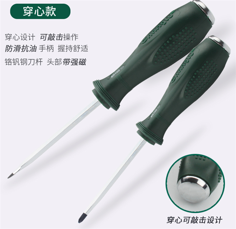 長鹿抗油防滑螺絲刀批穿心可敲擊超硬工業級改錐一字十字起子帶磁